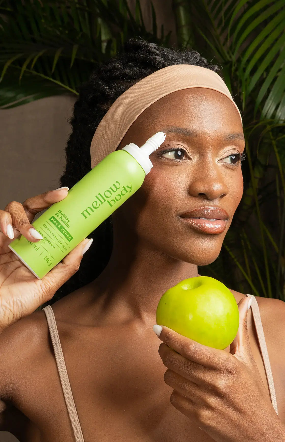 ao contrário de sabonetes que deixam a pele repuxada, o mousse mellow elimina o suor e oleosidade na medida certa.